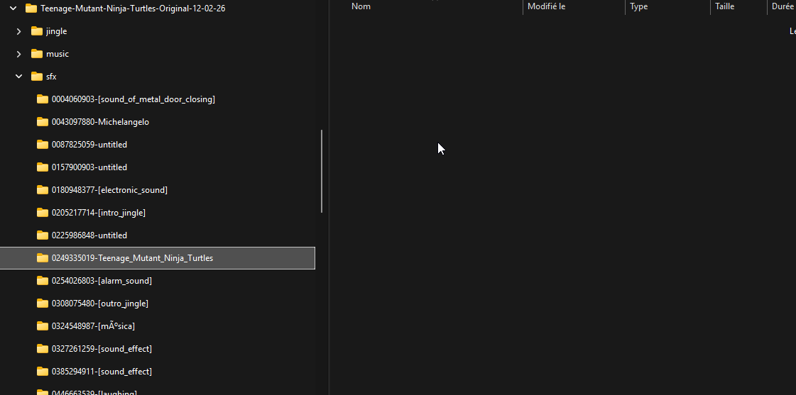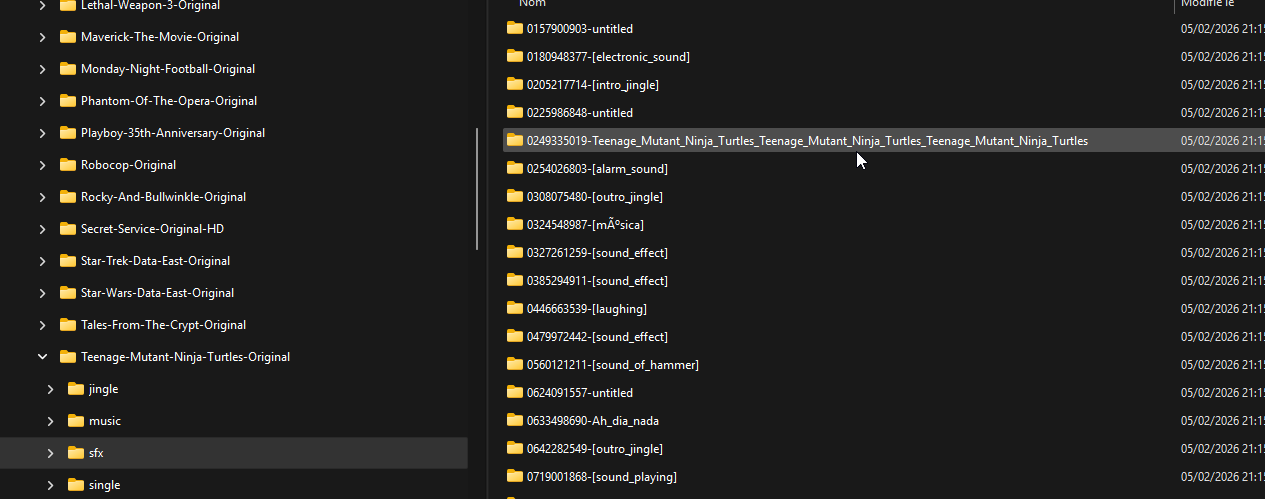 Le répertoire SFX : 0249335019-Teenage_Mutant_Ninja_Turtles est vide dans le pack original et ne pas présent pas Studio ? La version reste sur 2026.02.02 avec un téléchargement le 12.02.2026 mais c'est bien la nouvelle version car ce fameux répertoire a un nom plus court ... Une idée ?
